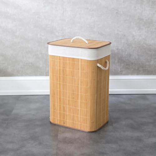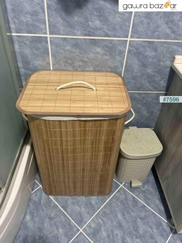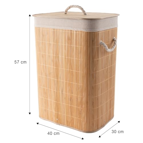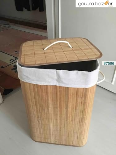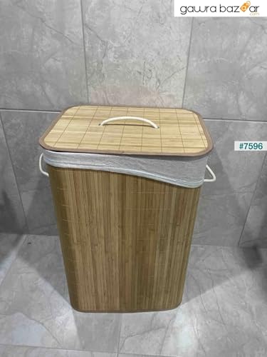 Generic - سلة غسيل بامبو مبطنة بكتان - حل عملي ومتعدد الاستخدامات - من جينيريك