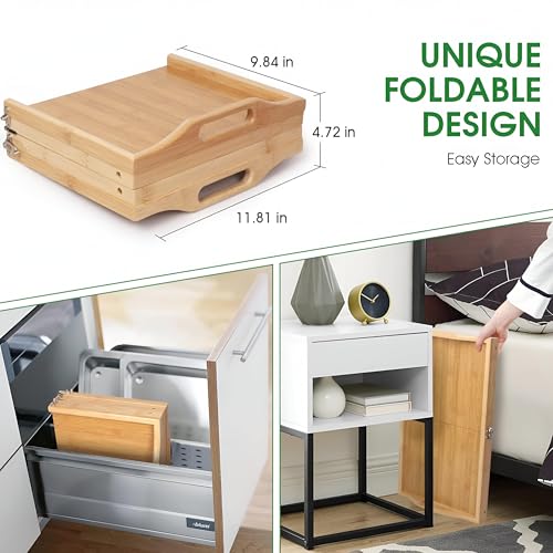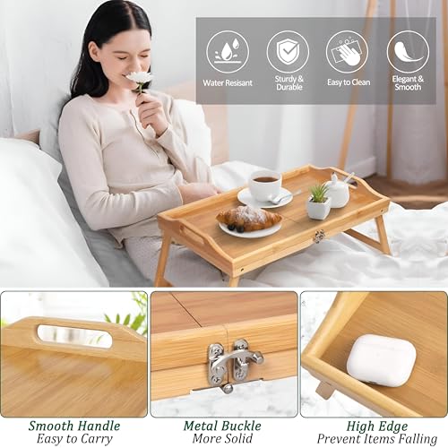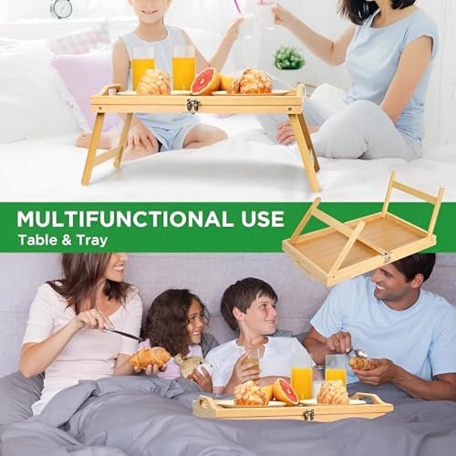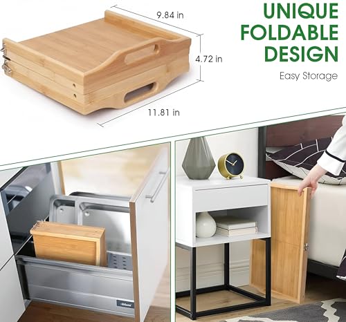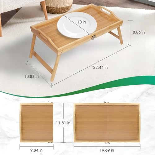 Generic - صينية وجبات خفيفة من الخيزران - طاولة متعددة الوظائف قابلة للطي للافطار والتلفزيون واللابتوب وتناول الطعام الكاجوال مع تثبيت آمن
