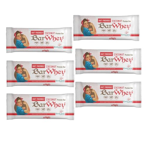 Bar Whey - لوح بروتين جوز الهند عالي البروتين قليل الدسم صديق للنظام الغذائي من بار واي (6 ألواح)، مصنوع خصيصًا للنساء، آمن للحمية الغذائية، غني بالألياف، وجبة خفيفة مرضية، يبقيك نشيطة طوال اليوم