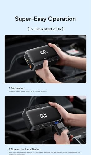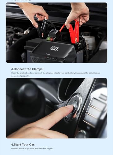 - ✅ شاشة مدمجة تخبر عن مستوى شحن البطارية في مشغل التشغيل - وبمجرد شحنها بالكامل، يمكن استخدامها لتشغيل سيارتك حتى 50 مرة.
