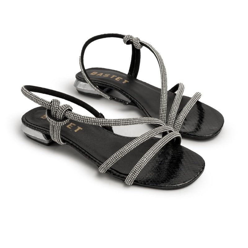 BASTET - صندل رسمي مسطح للنساء "نيث" بفتحة أمامية صغيرة وبحزام من حجر الراين للمناسبات الأنيقة من باستيت