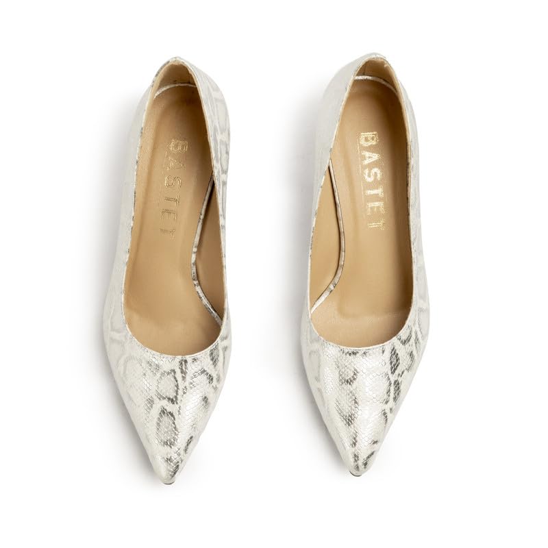 BASTET - حذاء "تاوريت" بكعب صغير 5 سم للنساء من باستيت حذاء حفلات بمقدمة مدببة وطبعة جلد ثعبان. أنيقة وجريئة - المقاس: