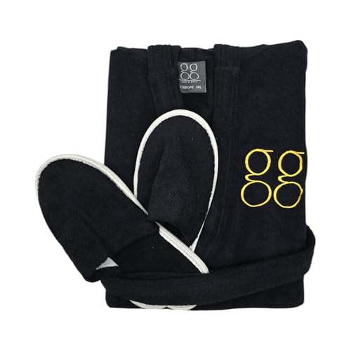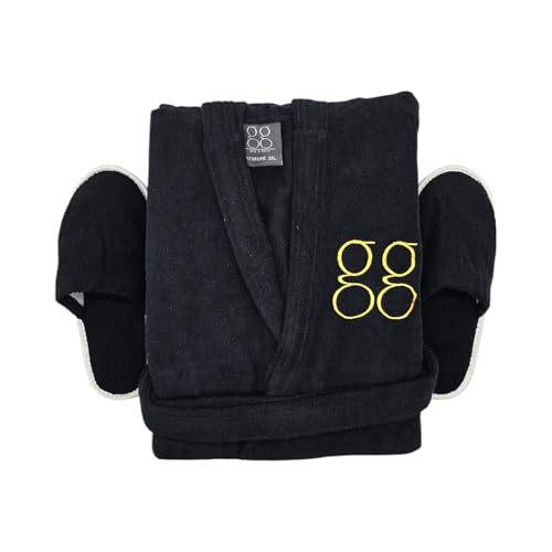 GG Bed and Bath - روب حمام مع شبشب قطن 100%، أسود، مقاس اكس اكس لارج