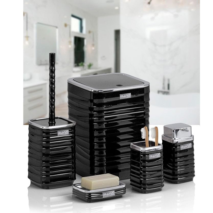 Generic - مجموعة اكسسوارات الحمام - 5 قطع ديكور الحمام (لونا) - اطار فضي