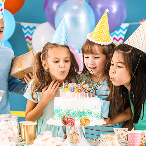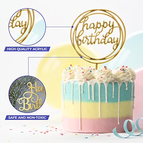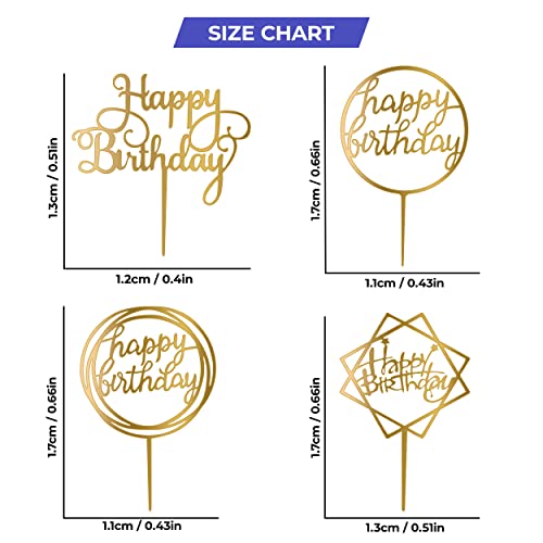 BakeMaestro - زينة كعكة عيد ميلاد سعيد بيك مايسترو - زينة كعكة اكريليك ذهبية - 4 أشكال مختلفة لمستلزمات تزيين حفلات أعياد الميلاد من باتيفيك - عبوة من 4 قطع
