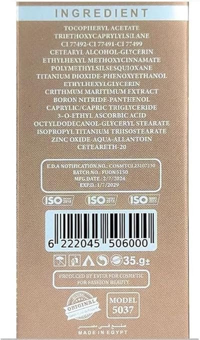 - منتج أصلي: مصنع في مصر من قبل إيفدا بور كوزماتيك للحصول على أفضل معايير الجودة والأمان للبشرة
