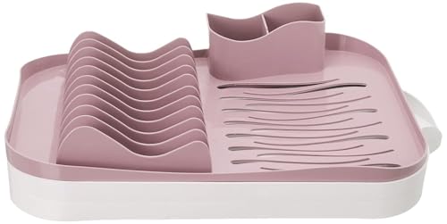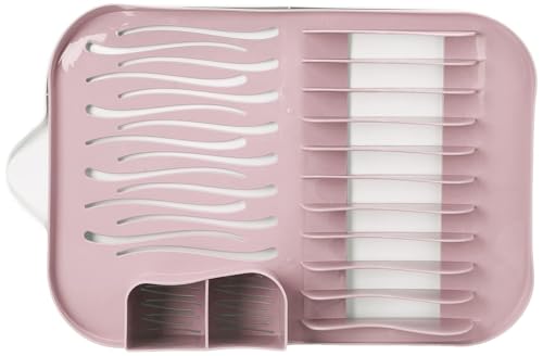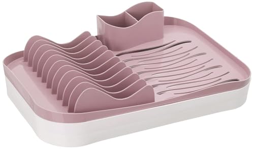 BB - رف تجفيف أطباق بلاستيكي مستطيل مع مصفاة من بي بي، مقاس 50 سم × 32 سم × 12 سم، أبيض / وردي