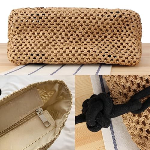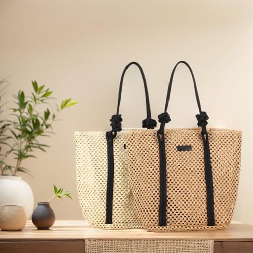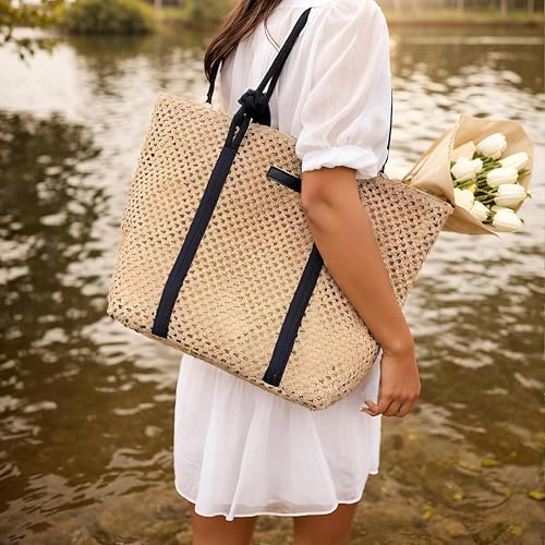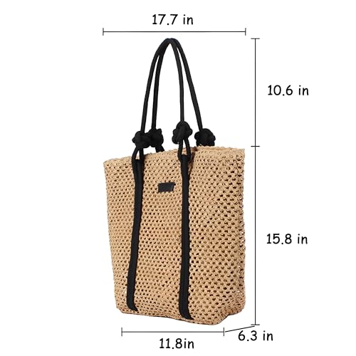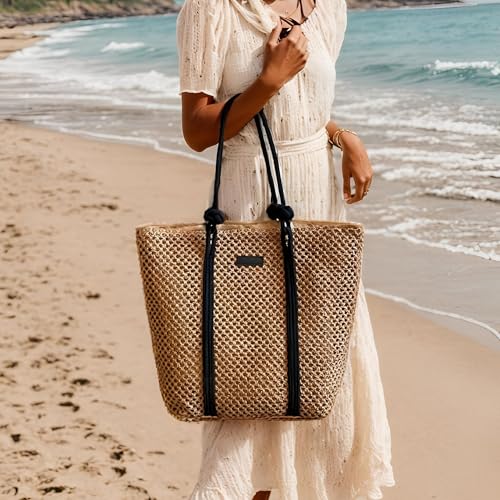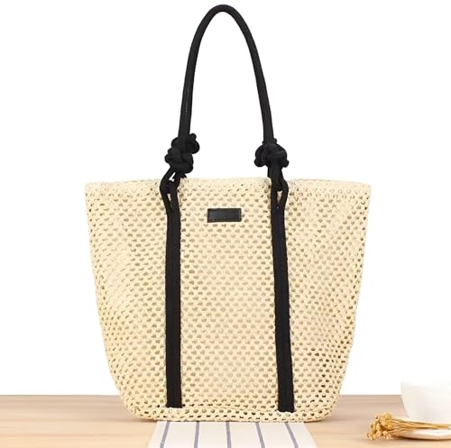 Generic - شنطة شاطئ بتصميم كروشيه يدوي، خفيفة الوزن وقابلة للطي، مثالية للسفر، تتميز بمقابض مريحة، هيكل متين، مثالية لحمل ملابس السباحة والوجبات الخفيفة