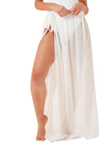 Generic - تنورة ملفوفة لتغطية الشاطئ، شيفون ابيض، فتحة جانبية مع ربطة ربط، ملابس سباحة سارونغ