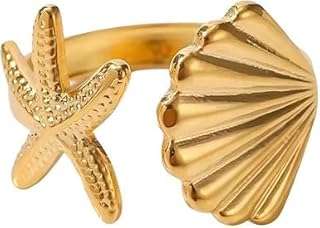 Generic - Beach Design Stainless Steel Open Ring - Gold