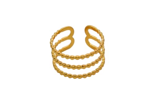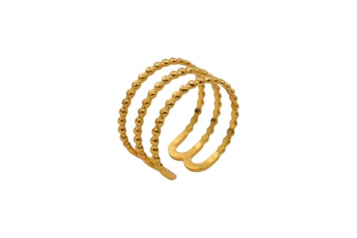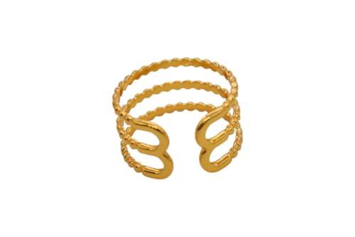 Generic - خاتم مفتوح من الستانلس ستيل بتصميم طبقات مطرز - ذهبي