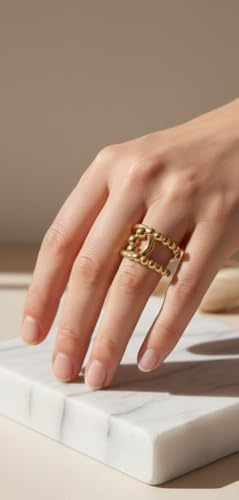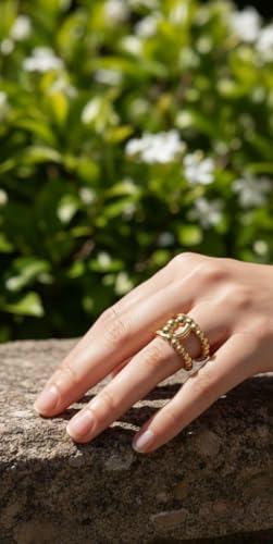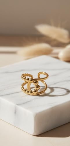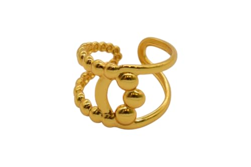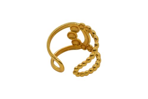 Generic - خاتم مفتوح من الستانلس ستيل بتصميم مطرز - ذهبي