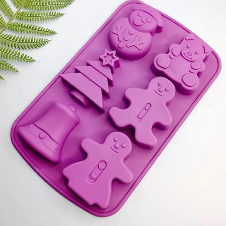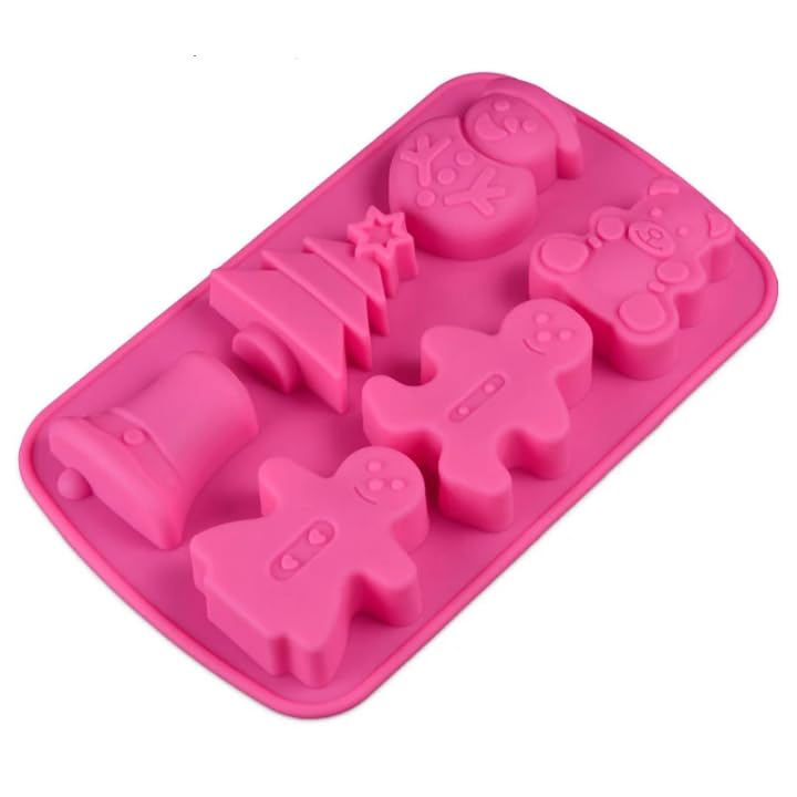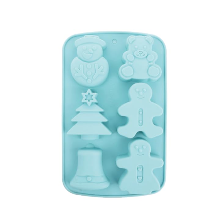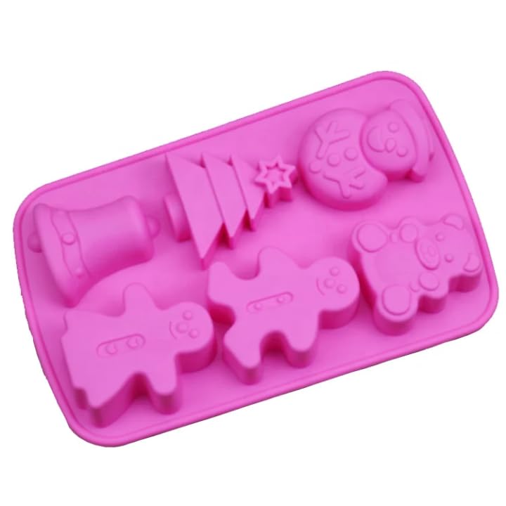 عام - قالب سيليكون لخبز الكيك شكل دب وشجرة الكريسماس وجرس ورجل الزنجبيل