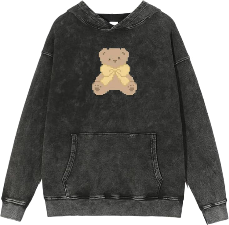 Generic - سويت شيرت بغطاء للرأس بتصميم دب باهت 8