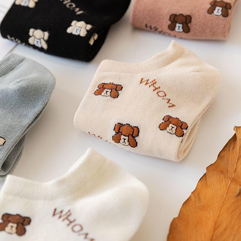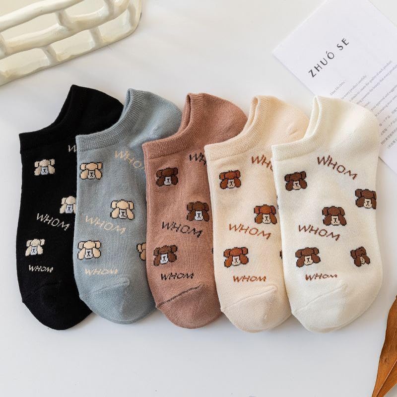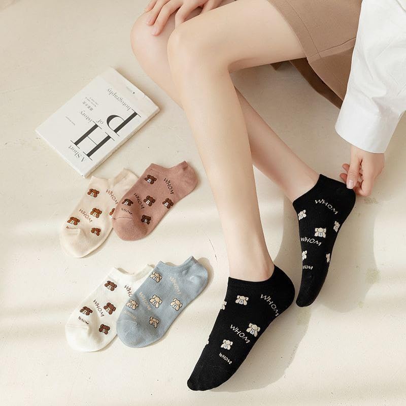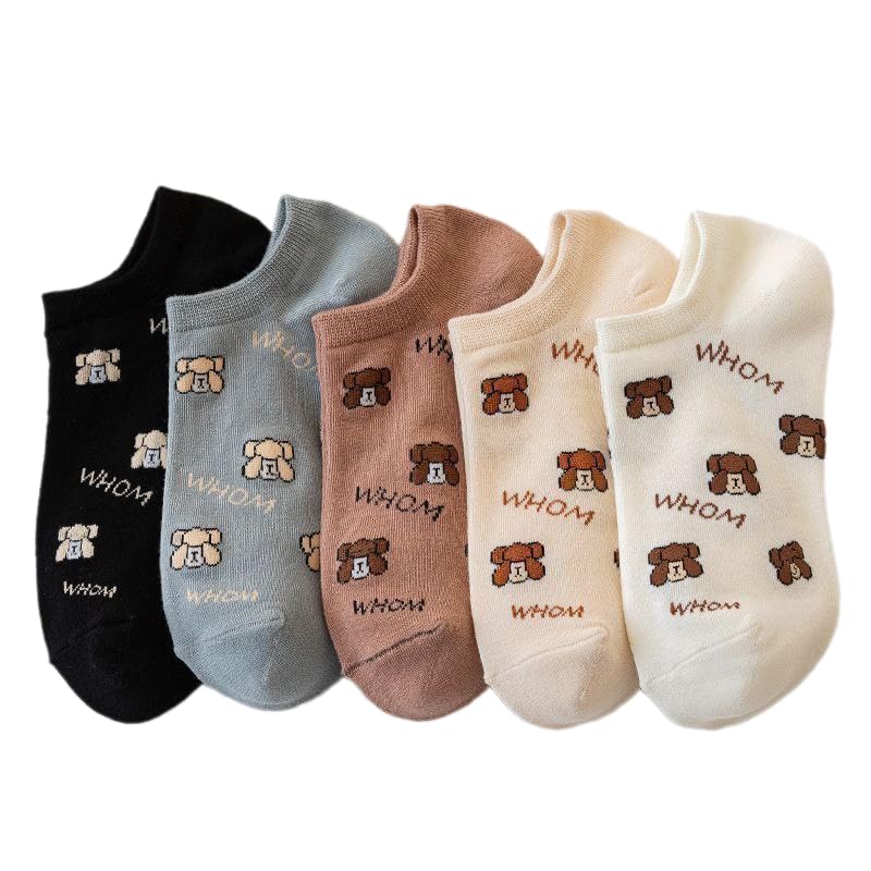 SMARTEDGE - جوارب قصيرة للكاحل بطبعة دب، مجموعة من ٥ أزواج متعددة الألوان، تصميم صيفي منخفض القص