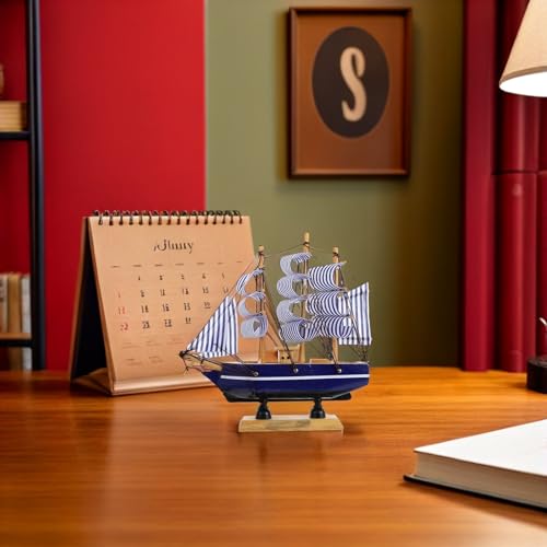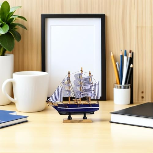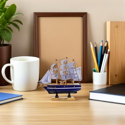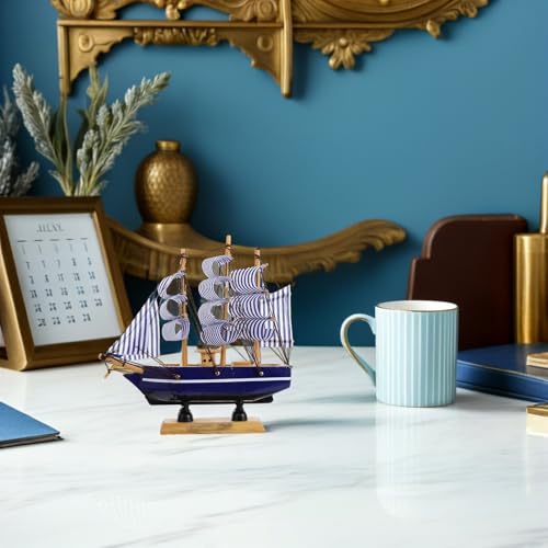 - ديكور سطح المكتب: 【التصميم】زينة بشكل قارب شراعي مصنوعة يدويًا بتصميم على الطراز المتوسطي، مطلية بالأزرق والأبيض.