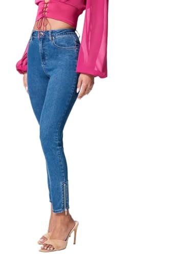 bebe - بيبي بنطلون جينز سكيني بخصر مرتفع وحاشية بسوستة مقاس 27 ازرق دينيم، للنساء