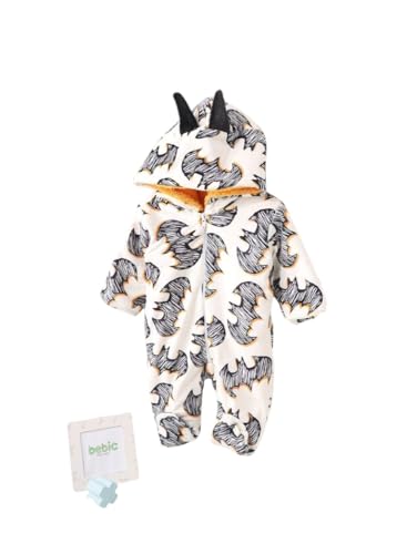 BEBIC - سالوبيت قصير من الصوف الناعم سالوبيت بغطاء للرأس بطبعة خفاش مع أذنين - زي شتوي دافئ لحديثي الولادة والأطفال الصغار