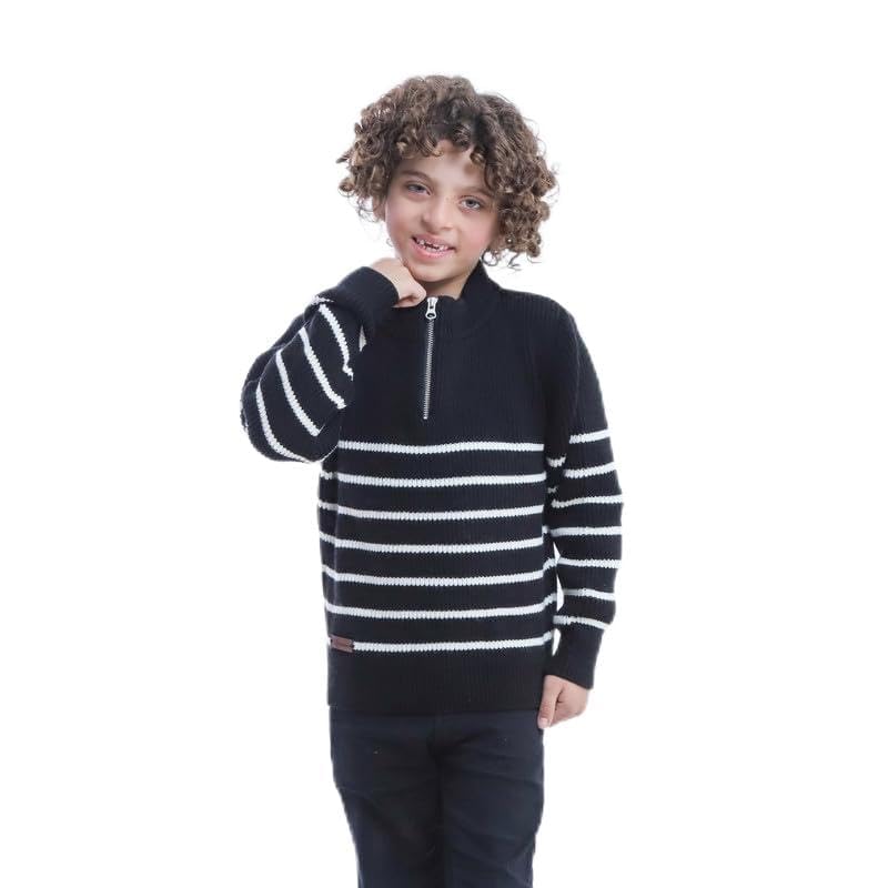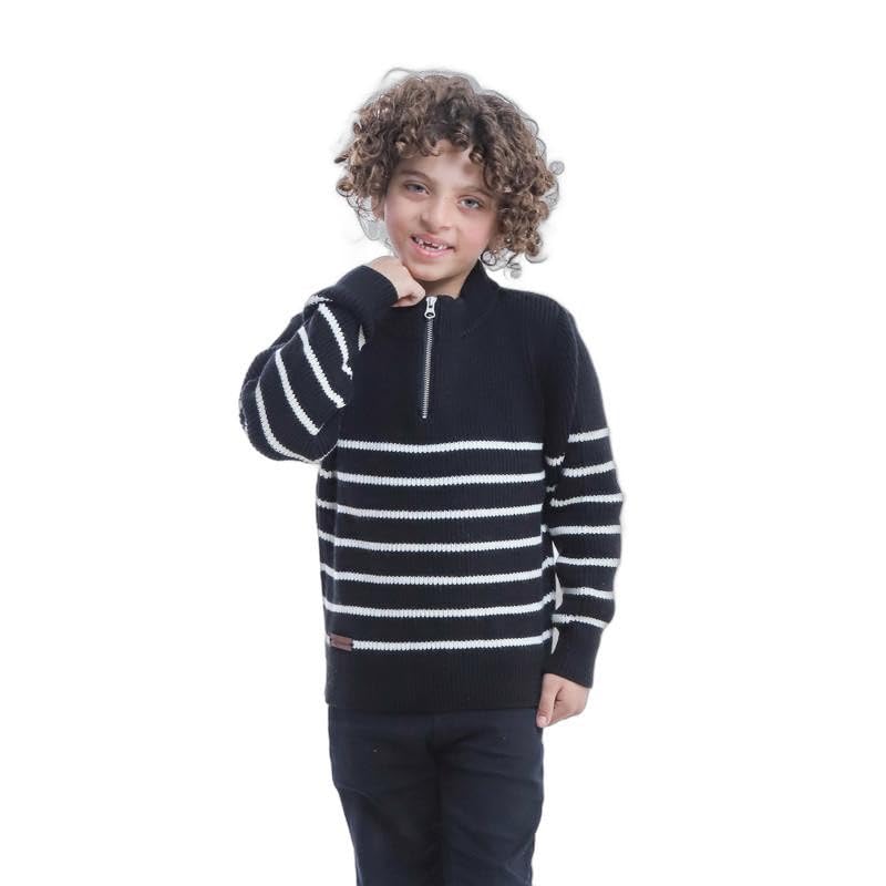 BEBO - بيبو بلوفر مخطط باكمام طويلة للاولاد - احمر غامق