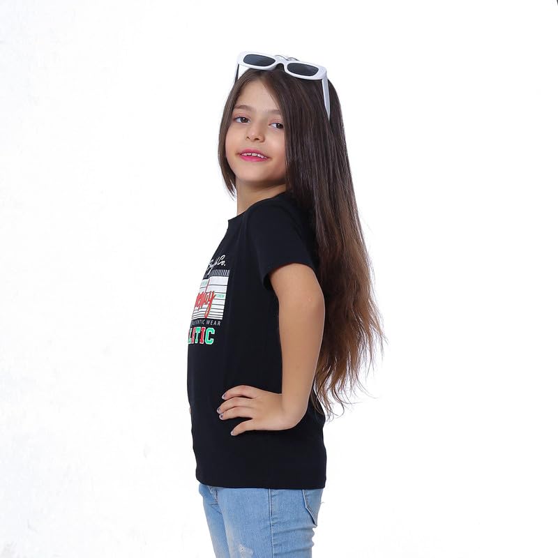 BEBO - بيبو تيشرت بناتي مطبوع باكمام 4 سنوات لون اسود - 12381_اسود_4_24