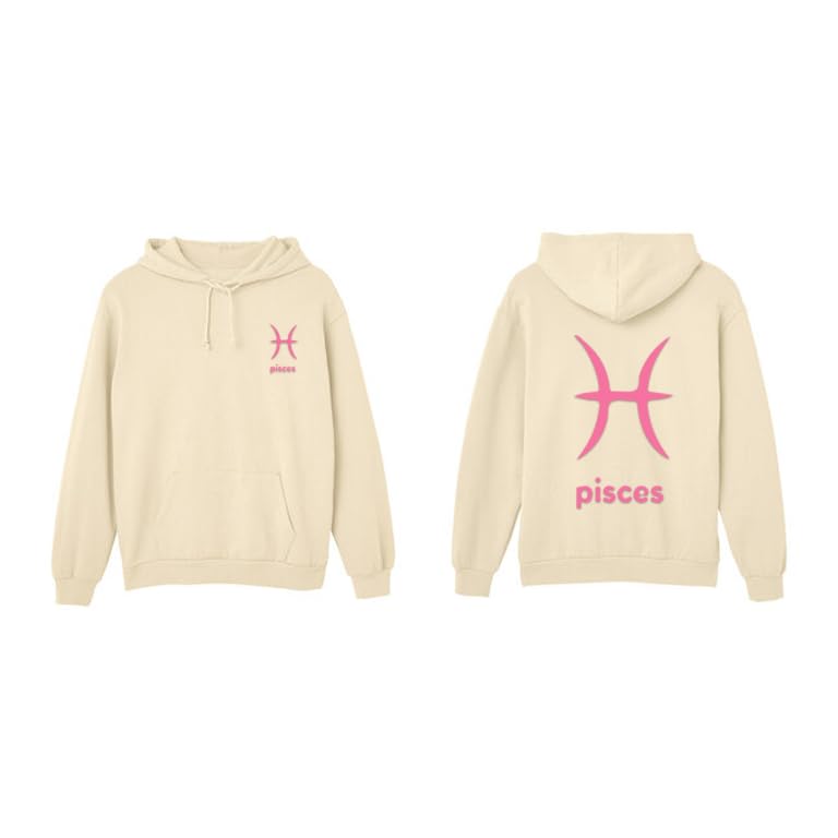 Generic - هودي قطن بيج مع شعار برج الحوت الوردي مقاس (3-6 سنوات)