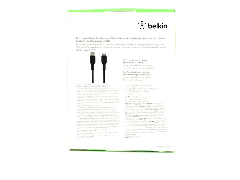 Belkin - كابل بي في سي‎ لايتنينج الى النوع سي من بيلكين 1 متر - اسود