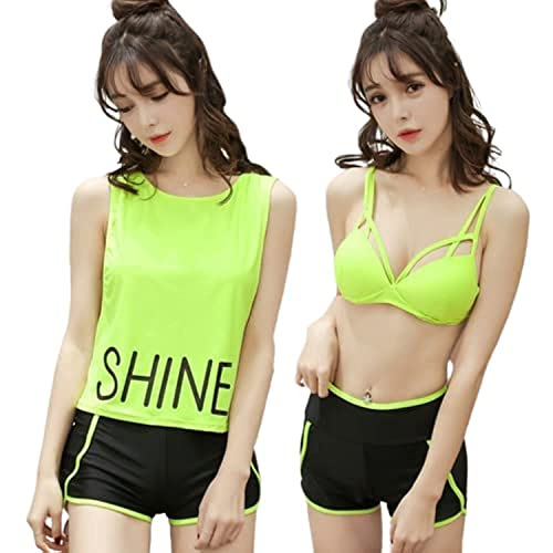 Generic - طقم من 3 قطع هوت شورت وتي شيرت وقبعة للشمس للنساء والفتيات من بيرت, فلاورسينت جرين, 1