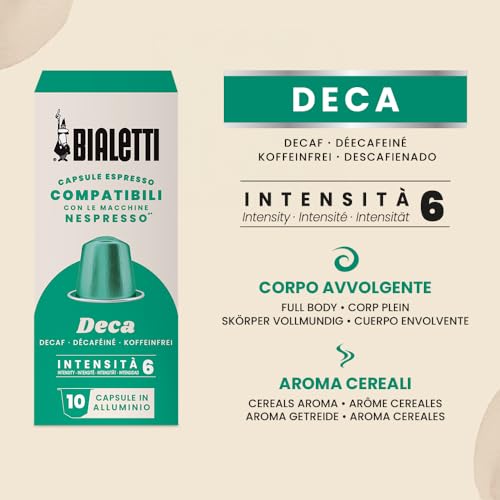 Bialetti - كبسولات قهوة منزوعة الكافيين متوافقة مع ماكينات نسبريسو لتحضير القهوة من بياليتي – عبوة 10 كبسولات، 85 جم