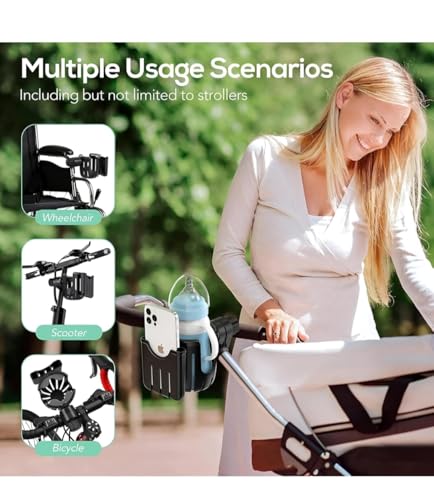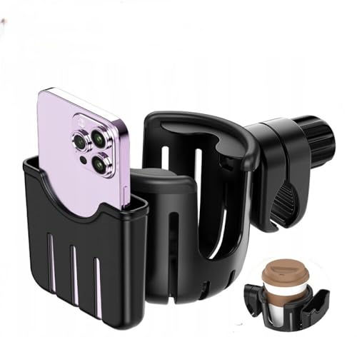 Generic - حامل أكواب للدراجة والعربة، مع مشبك قابل للتعديل، مع حماية مطاطية وتصريف للمياه، أسود