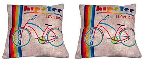 Other - وسادة ديكور محبى الدراجات عدد 2 قطعة، كتان، متعدد الالوان
