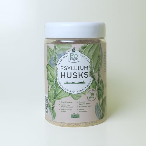 Biohayah - قشور السيليوم من بيوحياه، مكمل ألياف طبيعي نقي بنسبة 100%، مناسب لنظام كيتو، سهل الخلط، خالي من الجلوتين وغير معدل وراثيا، 100 جم