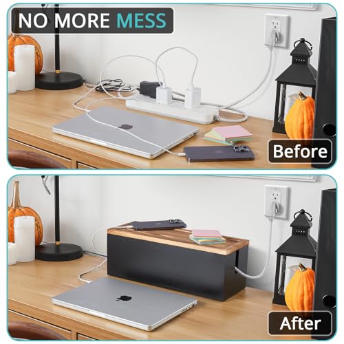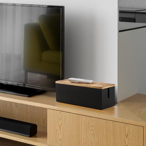 Bivvclaz - صندوق كبير من الخشب لتنظيم الكابلات وأسلاك الكهرباء وواقيات الحماية من تدفق التيار والشواحن، مناسب للمكتب والأرضية من بيفكلاز، لون أسود