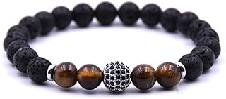 Other - سوار من الخرز الاسود الماط مع وجه الاسد الفضي - مقاس 18