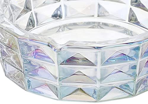 - وعاء زجاج كريستال دائري كبير مزخرف بنمط مربعات عاكسة بارزة (19 × 19 × 6.5 سم)