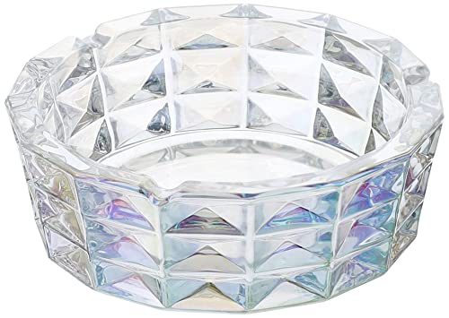Black Bear - طفاية زجاج كريستالى دائرية جامبو مربعات ميتالك بارزة (19*19*6.5 سم)، شفاف، من بلاك بير