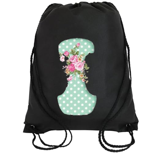 Generic - شنطة سوداء برباط بتصميم زهور، حرف (I)،