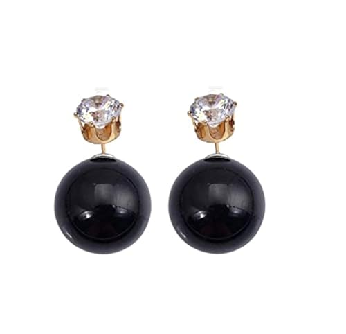 Other - اقراط كروية دورين ذو مسمار اللون اسود، معدن، للأنثى