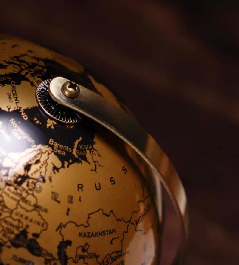 Generic - كرة ارضية مزخرفة بلون اسود وذهبي مقاس 25 سم