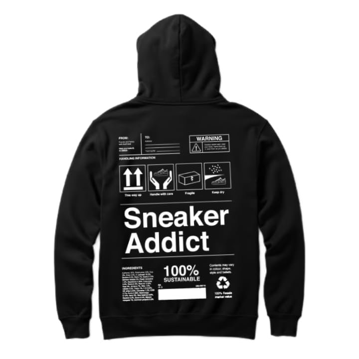 Generic - هودي اسود كبير الحجم للشباب بتصميم فني فني من الخلف مقاس كبير بعبارة TEXT للعمل والعمل القط (حذاء رياضي) 60