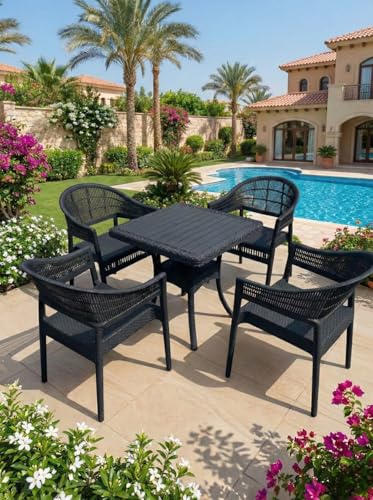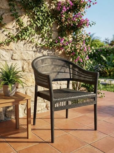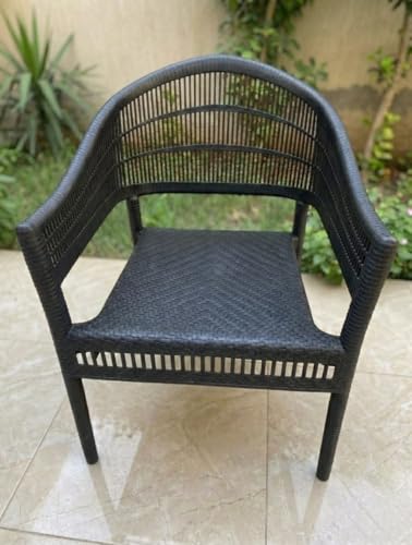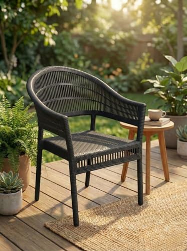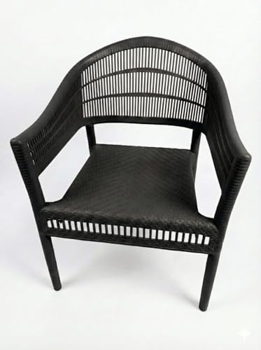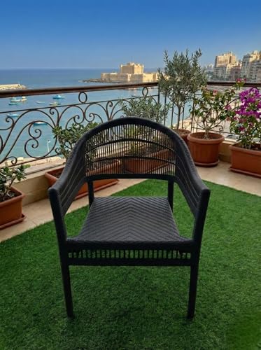 Generic - كرسي فوتيه راتان أسود فخم - تصميم مودرن للحدائق والبلكونات (Black Rattan) - بلاستيك مقوى عالي التحمل (اسود)