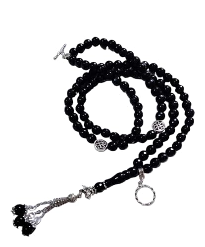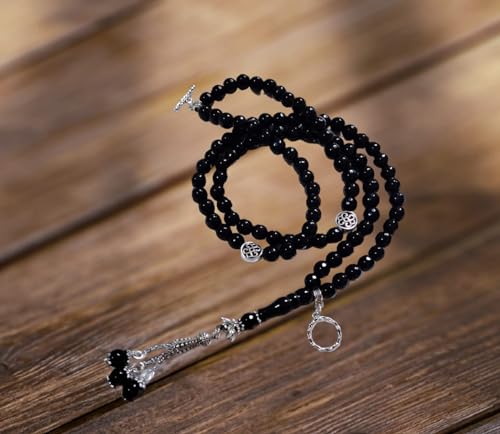 Generic - سبحة سوداء مع 99 خرزة مصنوعة من الأحجار الكريمة مع دلايات، للكبار من الجنسين