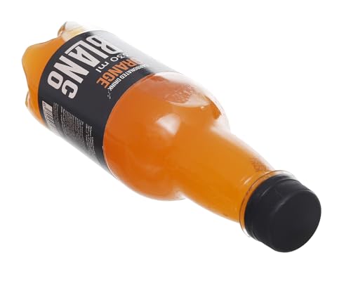 - التعبئة: تصميم زجاجة بلاستيكية شفافة يظهر اللون البرتقالي مع علامة تجارية حديثة باللونين الأسود والأبيض.