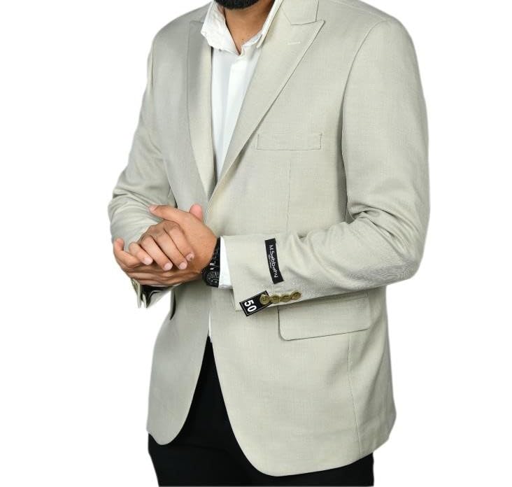 Generic - بليزر رجالى خامة كتان -لون بيج