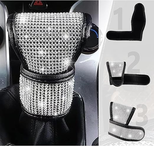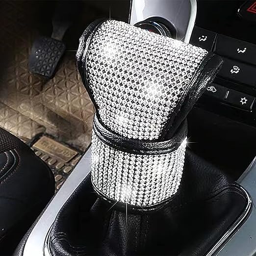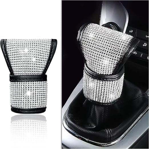 - [مادة متينة] غطاء مقبض ناقل الحركة الأوتوماتيكي مصنوع من الكرستال . مرصع بالكرستال الابيض، قوي ومتين، ناعم وجميل، لن يؤذي يديك.