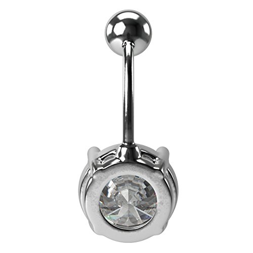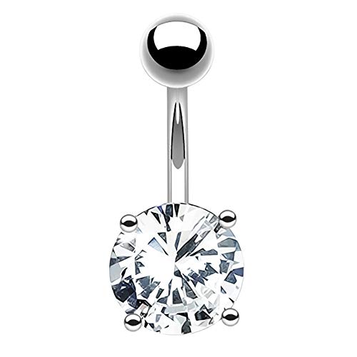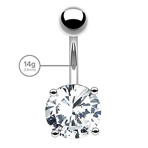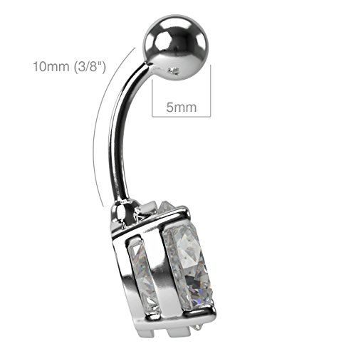 Bling Piercing - خاتم سرة البطن من الستانلس ستيل الجراحي 14 غرام للنساء والرجال مرصع بكريستال زركونيا مكعب واحجار كريمة 10 ملم
