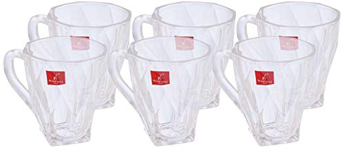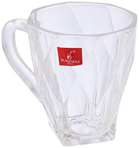 Blinkmax - طقم مجات شاي زجاج مزخرفة من بلينك ماكس، 8 × 9 سم - 6 قطع، أبيض