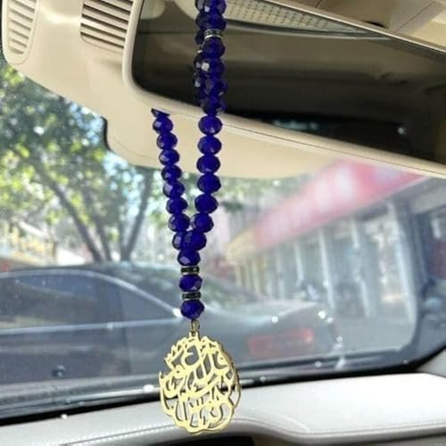 - زينة معلقة لمرآة السيارة باللون الأزرق مع دلاية