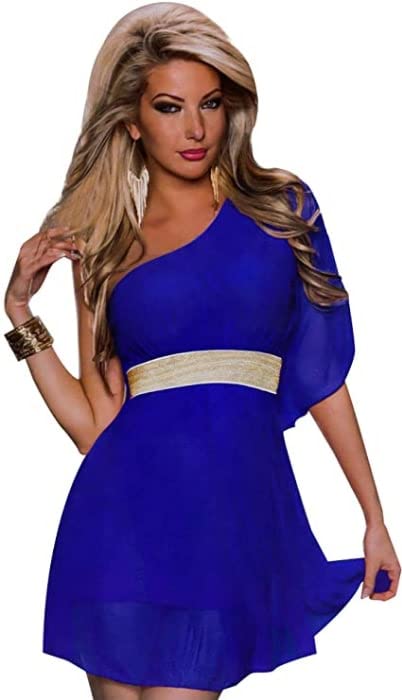 Generic - فستان شيفون بكم واحد للنساء، ازرق