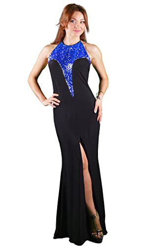 Generic - فستان أزرق نسائى قطن مزين بترتر من الصدر