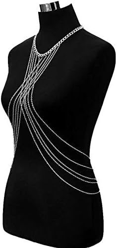 Generic - سلسلة للجسم حمالة الصدر والبيكيني، سلسلة بيكيني سلسلة مجوهرات الجسم، اكسسوارات للنساء والفتيات (فضي